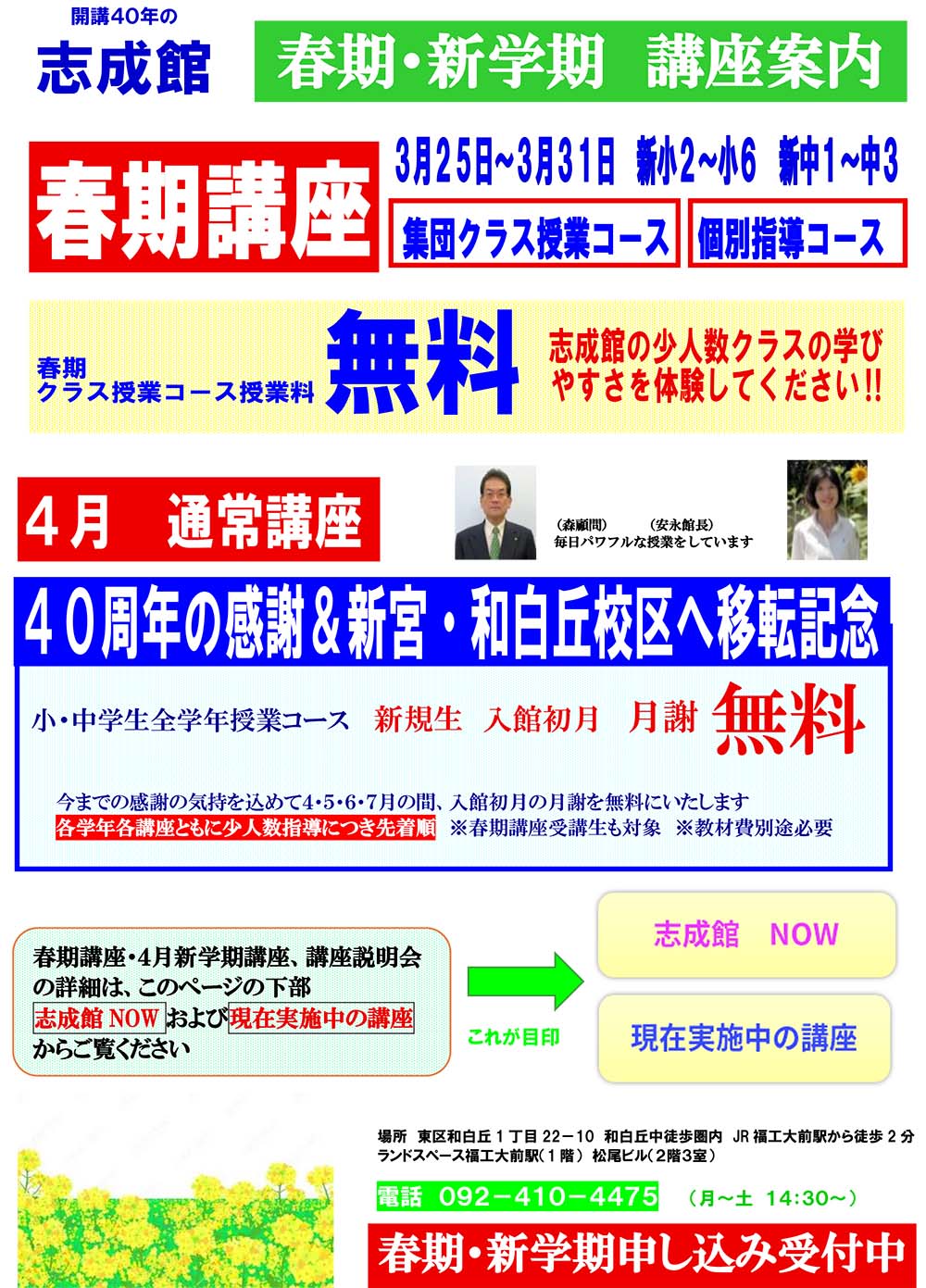現在ホームページの改定の準備を進めています。授業の実施要項(授業曜日・月謝など)に関しては、このホームページの「志成館NOW」または「現在実施中の講座」をクリックしてご覧下さい。